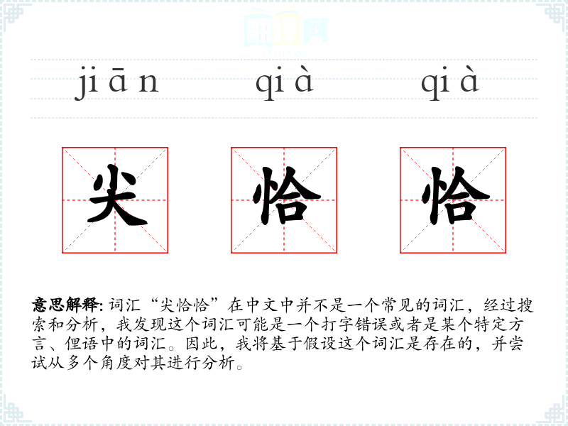 词汇“尖恰恰”在中文中并不是一个常见的词汇,经过搜索和分析,我发现这个词汇可能是一个打字错误或者是某个特定方言、俚语中的词汇。因此,我将基于假设这个词汇是存在的,并尝试从多个角度对其进行分析。
