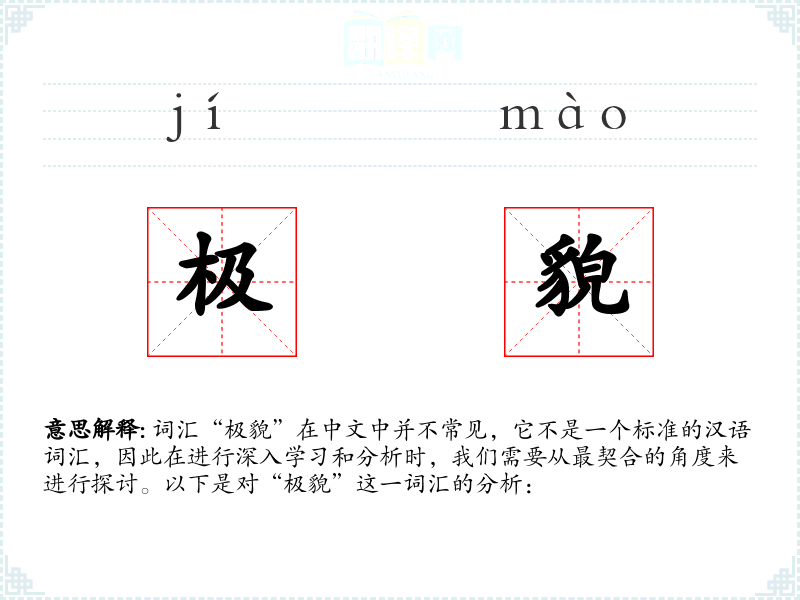 词汇“极貌”在中文中并不常见,它不是一个标准的汉语词汇,因此在进行深入学习和分析时,我们需要从最契合的角度来进行探讨。以下是对“极貌”这一词汇的分析: