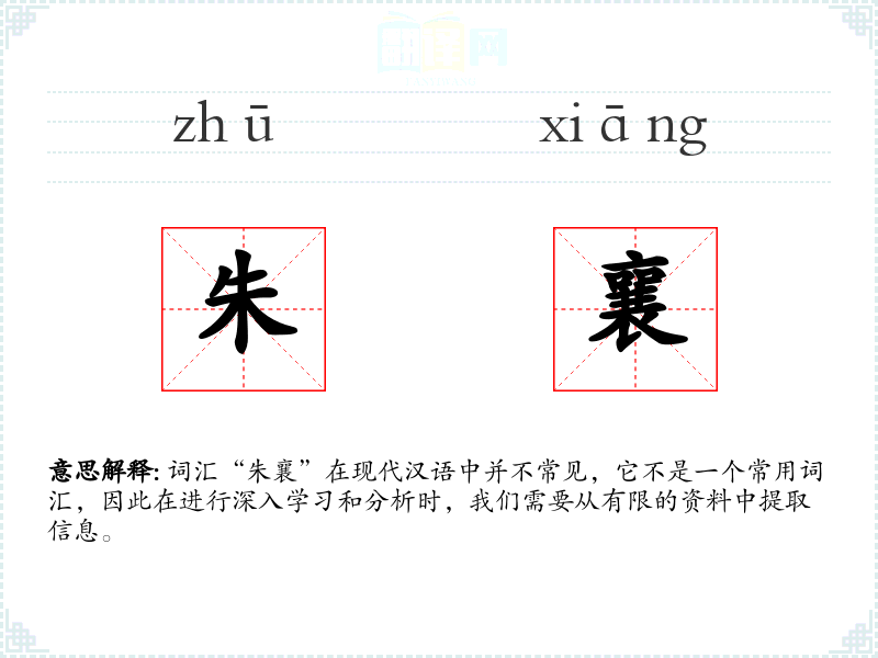 词汇“朱襄”在现代汉语中并不常见,它不是一个常用词汇,因此在进行深入学习和分析时,我们需要从有限的资料中提取信息。