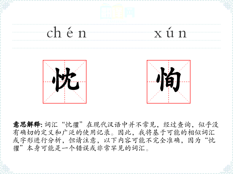 词汇“忱忂”在现代汉语中并不常见,经过查询,似乎没有确切的定义和广泛的使用记录。因此,我将基于可能的相似词汇或字形进行分析,但请注意,以下内容可能不完全准确,因为“忱忂”本身可能是一个错误或非常罕见的词汇。