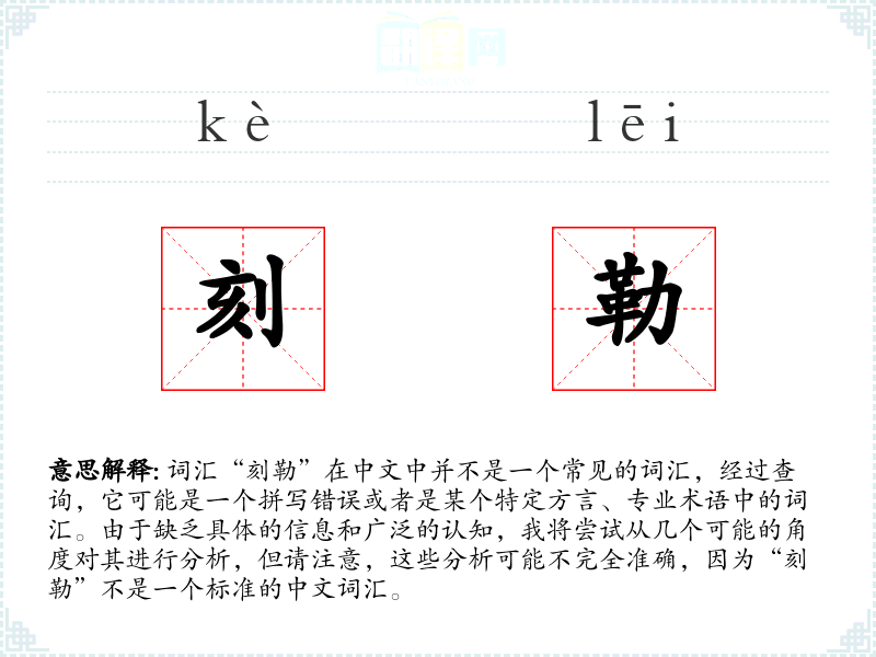 由于“刻勒”不是一个标准的中文词汇,我们无法给出确切的基本定义。它可能是某个特定语境下的词汇,或者是某个方言中的表达。