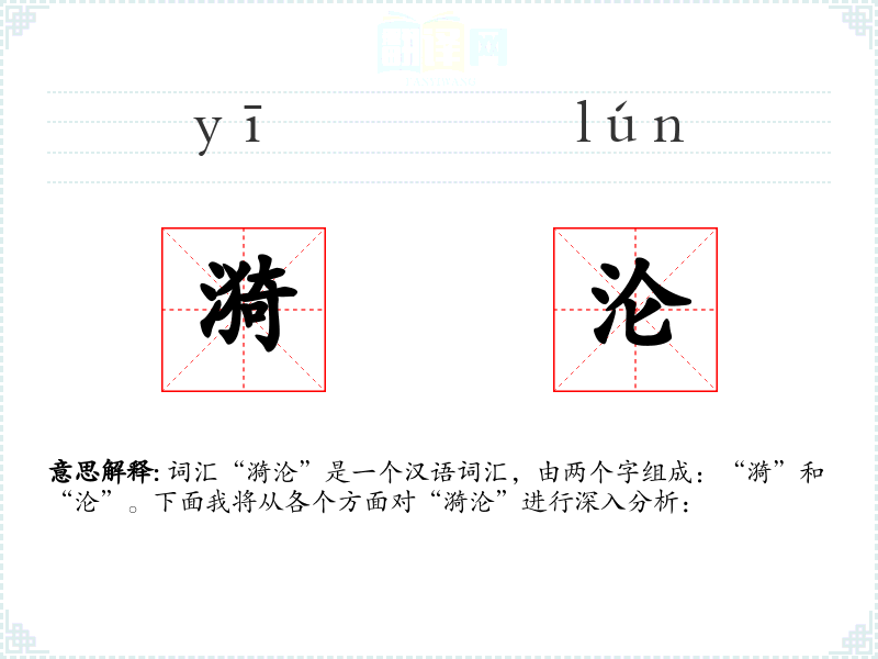 - 词源:“漪”和“沦”都是古代汉语词汇,分别有各自的历史渊源。