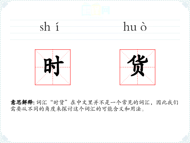 “时货”字面意思可能指的是“时令的货物”或“流行的商品”。在商业领域,它可能指的是那些根据季节或时尚潮流而变化的商品。
