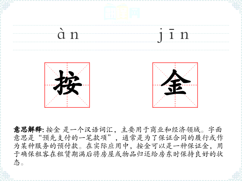 "按金"的意思解释、按金是什么意思由翻译网汉语词典查词提供。