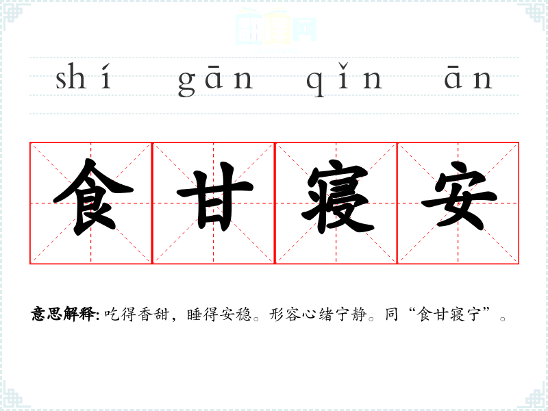 吃得香甜,睡得安稳。形容心绪宁静。同“