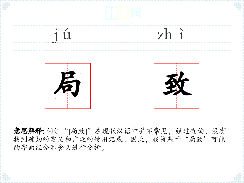 词汇“[局致]”在现代汉语中并不常见,经过查询,没有找到确切的定义和广泛的使用记录。因此,我将基于“局致”可能的字面组合和含义进行分析。