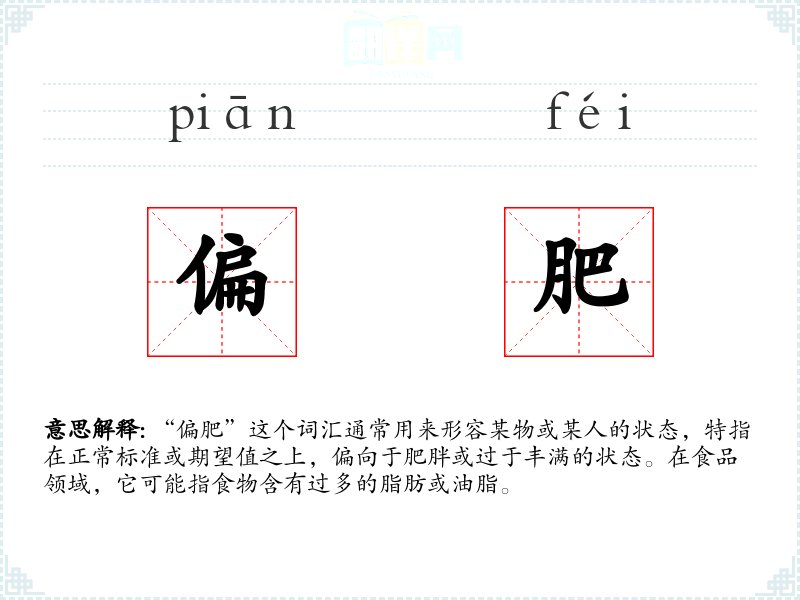 在我的生活中,我曾遇到过需要选择低脂肪食品的情况,这时“偏肥”这个词汇就非常有用,帮助我做出更健康的选择。