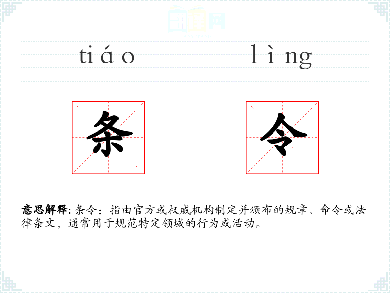 "条令"的意思解释、条令是什么意思由翻译网汉语词典查词提供。