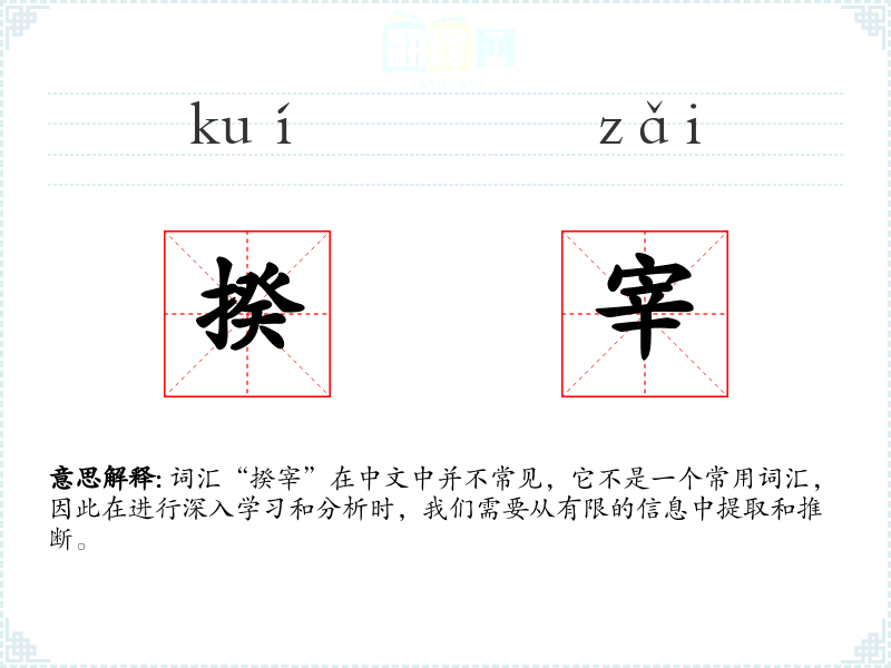 词汇“揆宰”在中文中并不常见,它不是一个常用词汇,因此在进行深入学*和分析时,我们需要从有限的信息中提取和推断。