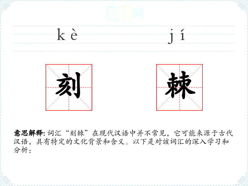 词汇“刻棘”在现代汉语中并不常见,它可能来源于古代汉语,具有特定的文化背景和含义。以下是对该词汇的深入学*和分析: