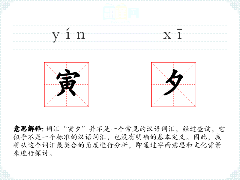 由于“寅夕”不是一个标准词汇,我们可以尝试从字面意思来解释: