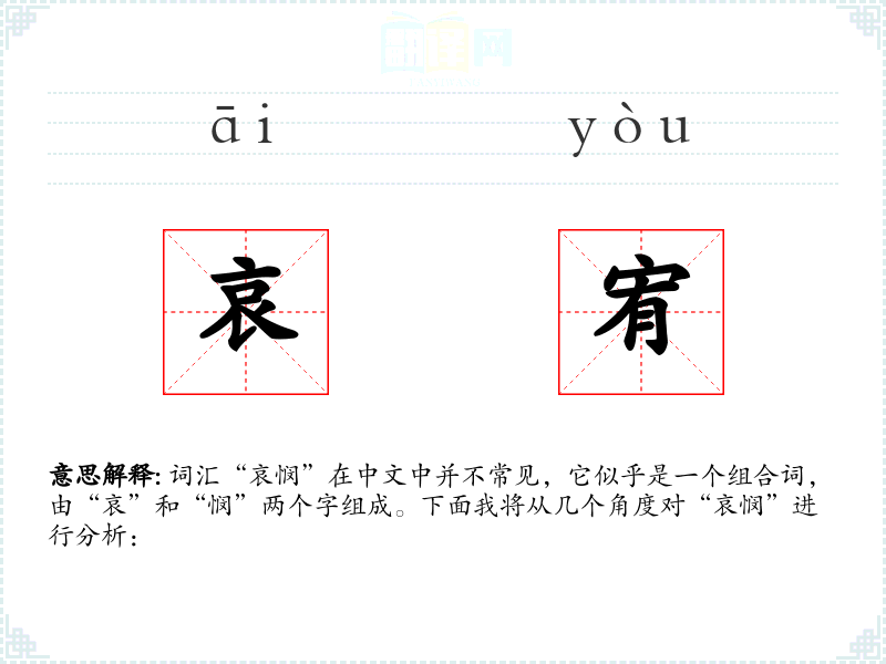 词汇“哀悯”在中文中并不常见,它似乎是一个组合词,由“哀”和“悯”两个字组成。下面我将从几个角度对“哀悯”进行分析:
