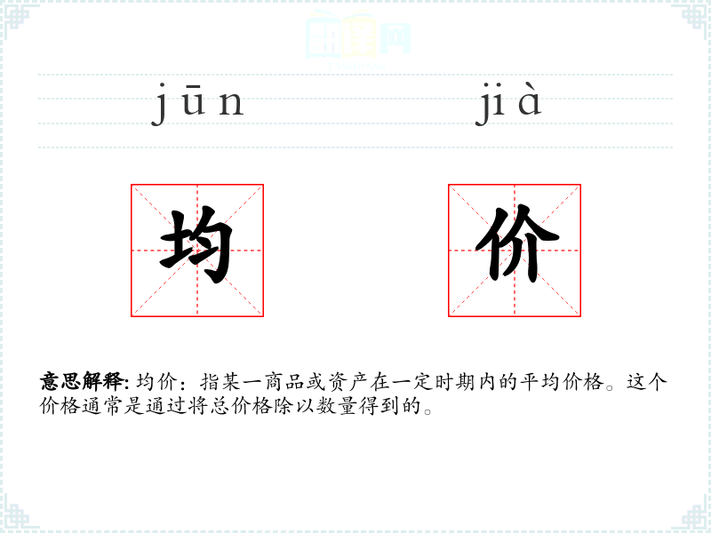 在英语中,“均价”可以翻译为“average price”,在不同文化中,这一概念的应用和理解大致相同。