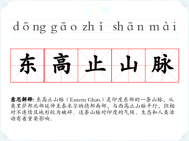 东高止山脉不仅是地理上的一个实体,也是文化和生态的重要组成部分。了解和学习这个词汇,有助于更深入地理解印度的自然环境和文化多样性。
