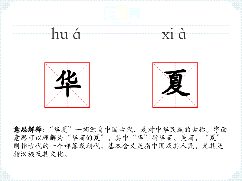 “华夏”这个词对我来说,不仅是一个地理或民族的名称,更是一种文化和历史的象征。它在我的语言学*和表达中,是一个充满情感和意义的重要词汇。