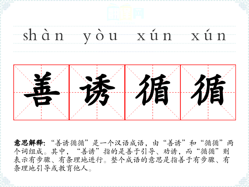 - 循循善诱:与“善诱循循”意思相同,强调有步骤地引导。