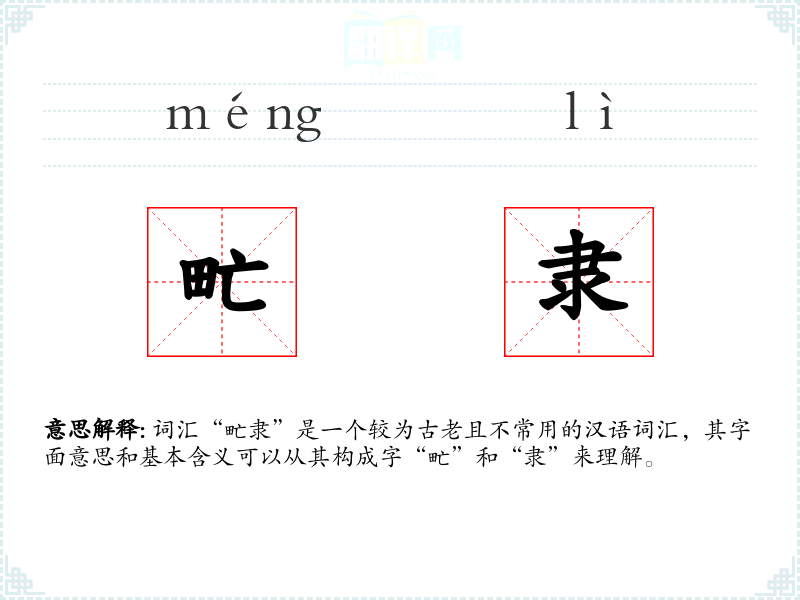 词汇“甿隶”是一个较为古老且不常用的汉语词汇,其字面意思和基本含义可以从其构成字“甿”和“隶”来理解。