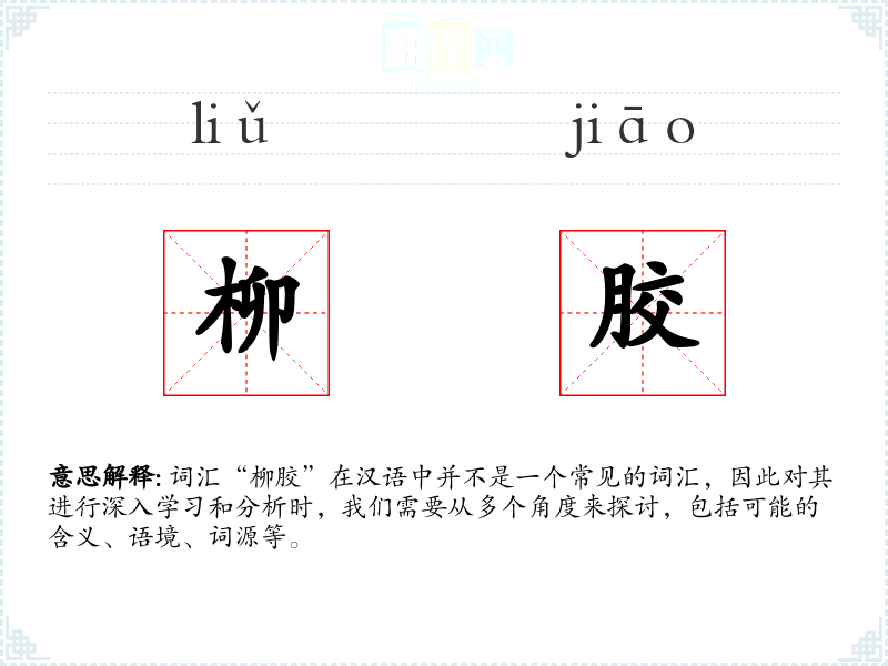 - 反义词:由于“柳胶”不是一个常用词汇,反义词可能不适用。