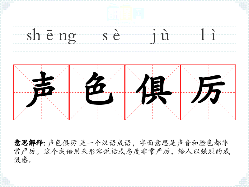 声色俱厉 是一个汉语成语,字面意思是声音和脸色都非常严厉。这个成语用来形容说话或态度非常严厉,给人以强烈的威慑感。