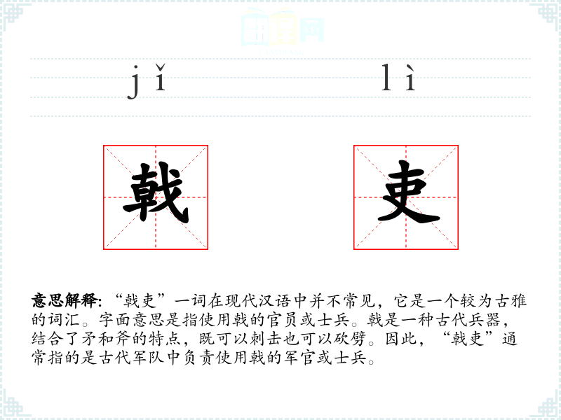 “戟吏”一词在现代汉语中并不常见,它是一个较为古雅的词汇。字面意思是指使用戟的官员或士兵。戟是一种古代兵器,结合了矛和斧的特点,既可以刺击也可以砍劈。因此,“戟吏”通常指的是古代军队中负责使用戟的军官或士兵。