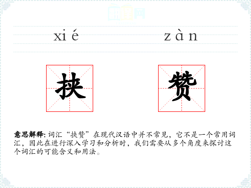 词汇“挟赞”在现代汉语中并不常见,它不是一个常用词汇,因此在进行深入学习和分析时,我们需要从多个角度来探讨这个词汇的可能含义和用法。