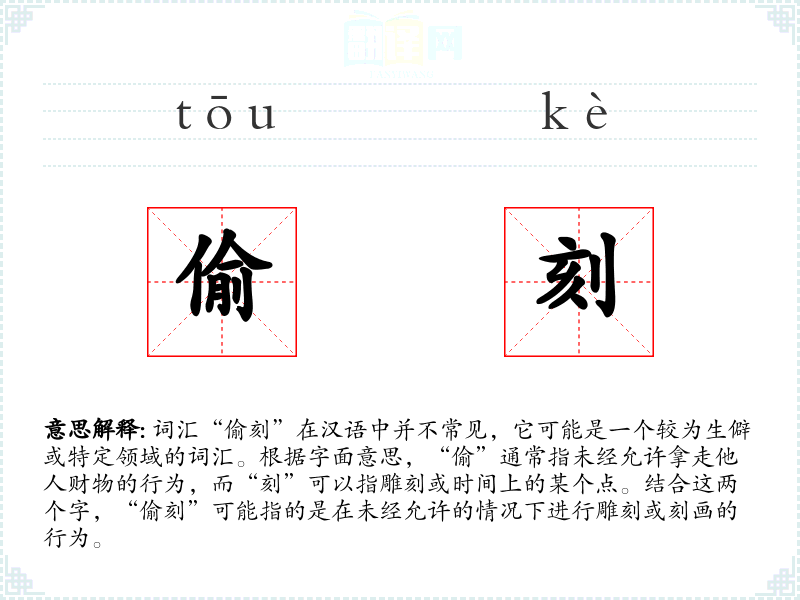 "偷刻"的意思解释、偷刻是什么意思由翻译网汉语词典查词提供。