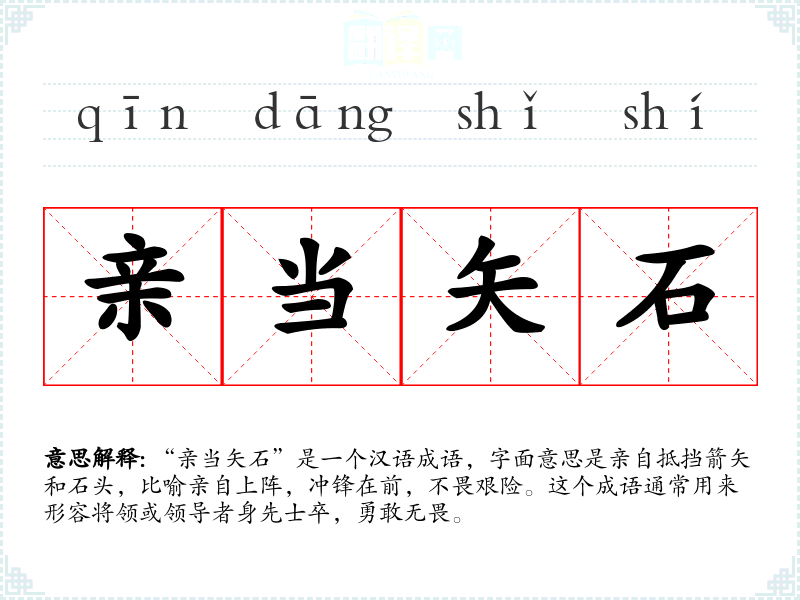 - 身先士卒:强调领导者带头行动,与“亲当矢石”意思相近,但更侧重于领导者的榜样作用。
