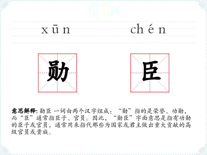 在日常生活中,虽然“勋臣”不是一个常用词汇,但在讨论历史或参与相关文化活动时,了解和使用这个词可以增加对话的深度和丰富性。