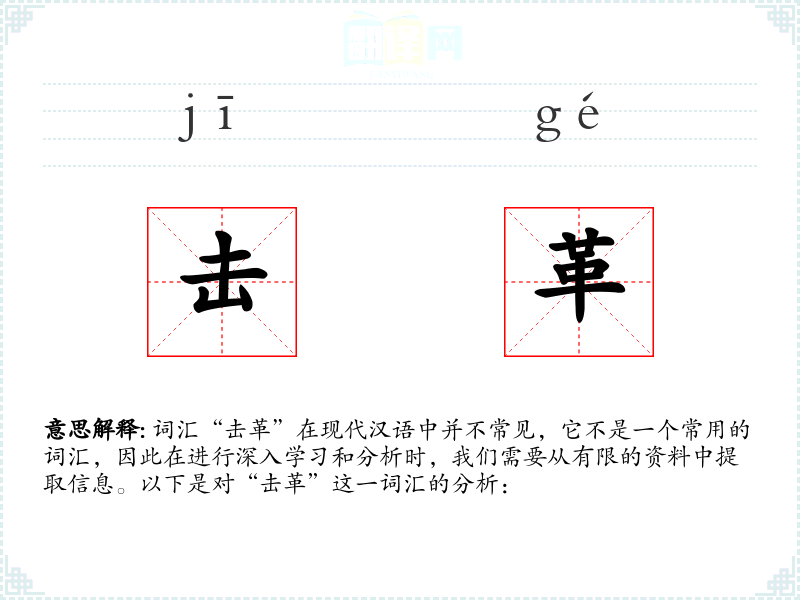 词汇“击革”在现代汉语中并不常见,它不是一个常用的词汇,因此在进行深入学*和分析时,我们需要从有限的资料中提取信息。以下是对“击革”这一词汇的分析: