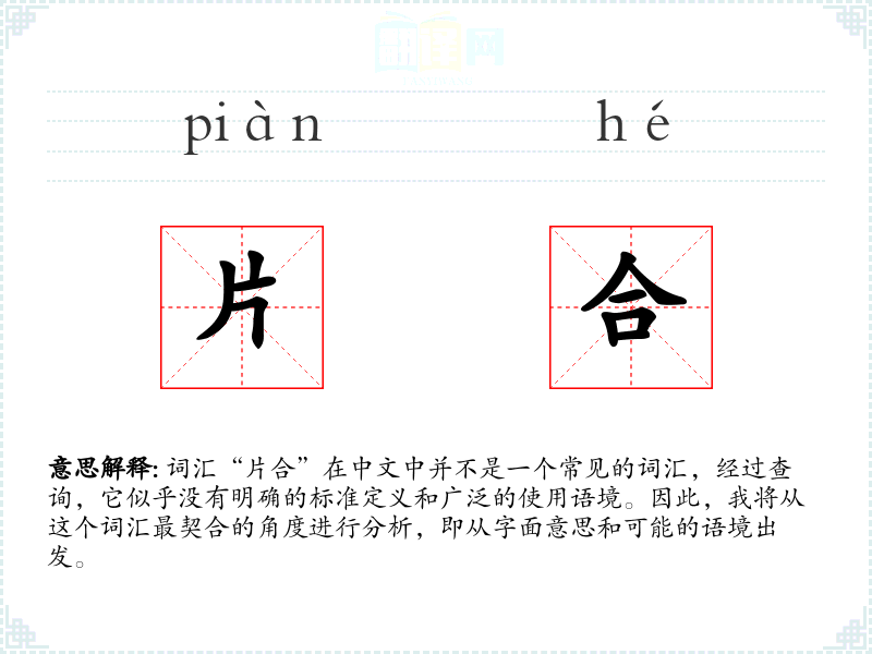 在其他语言中,可能没有直接对应“片合”的词汇,因为这是一个不常见的组合。