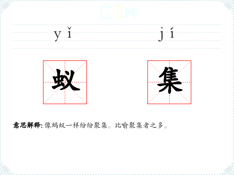 像蚂蚁一样纷纷聚集。比喻聚集者之多。