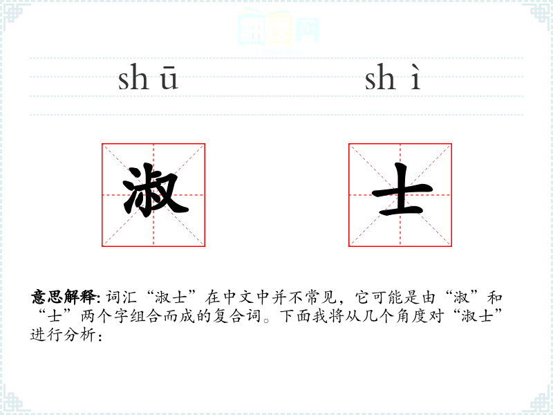 词汇“淑士”在中文中并不常见,它可能是由“淑”和“士”两个字组合而成的复合词。下面我将从几个角度对“淑士”进行分析: