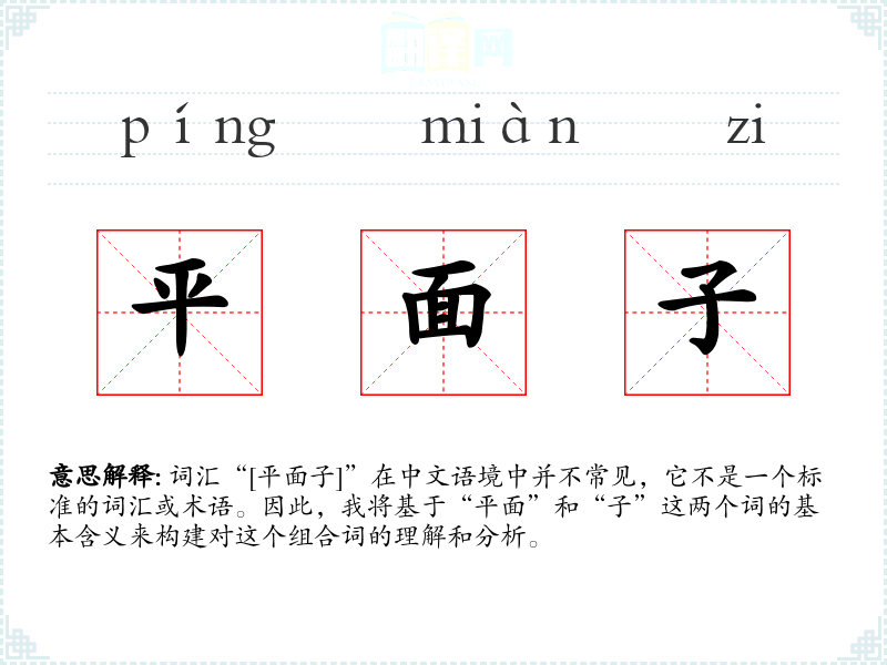 结合这两个词,“平面子”可以理解为一个较小的、具体的平面部分或对象。