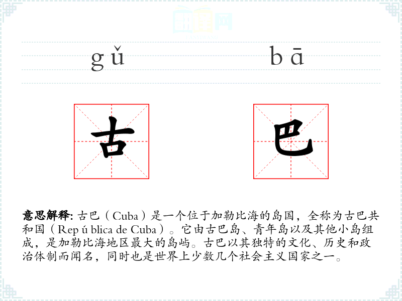 "古巴"的意思解释、古巴是什么意思由翻译网汉语词典查词提供。