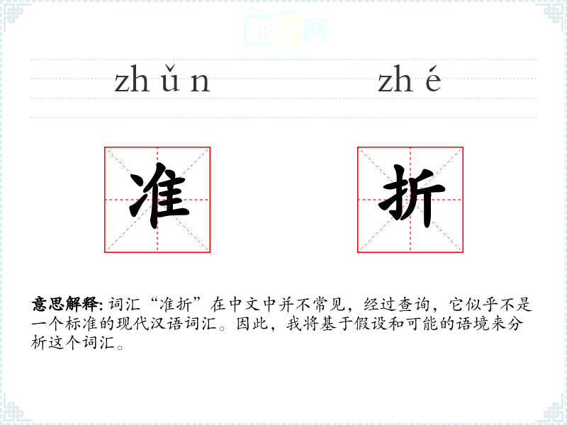词汇“准折”在中文中并不常见,经过查询,它似乎不是一个标准的现代汉语词汇。因此,我将基于假设和可能的语境来分析这个词汇。
