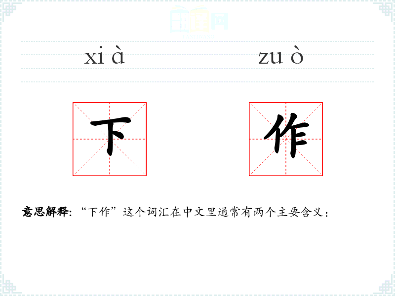 "下作"的意思解释、下作是什么意思由翻译网汉语词典查词提供。