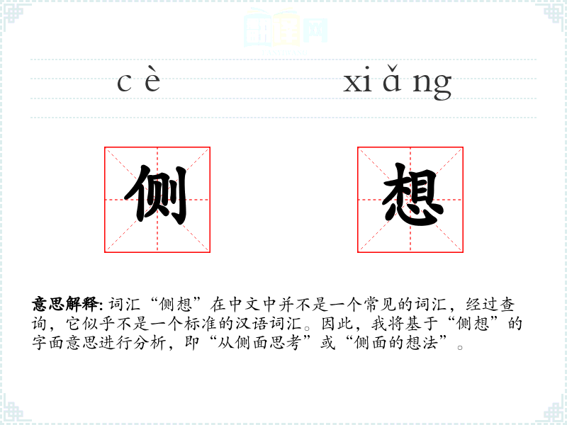 "侧想"的意思解释、侧想是什么意思由翻译网汉语词典查词提供。