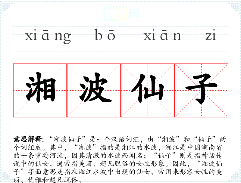 “湘波仙子”这个词汇的词源较为明确,由“湘波”和“仙子”两个词组合而成。在古代文学作品中,湘江常被用来象征美丽和神秘,而“仙子”则是**神话传说中的常见形象。随着时间的推移,这个词汇逐渐被用来形容具有湘江水波般美丽和仙女般气质的女性。