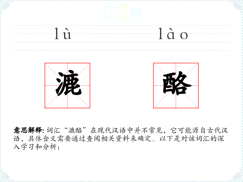 词汇“漉酪”在现代汉语中并不常见,它可能源自古代汉语,具体含义需要通过查阅相关资料来确定。以下是对该词汇的深入学习和分析: