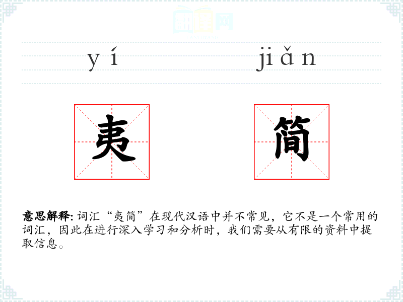 词汇“夷简”在现代汉语中并不常见,它不是一个常用的词汇,因此在进行深入学*和分析时,我们需要从有限的资料中提取信息。