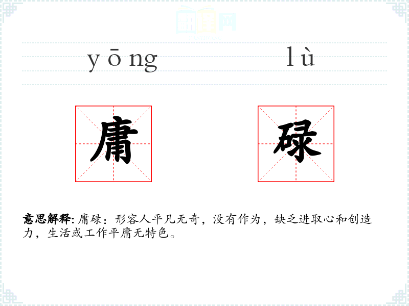 - 文学:在文学作品中,“庸碌”常用来形容主人公的性格或生活状态,如“他的一生庸碌无为,从未追求过自己的梦想。”