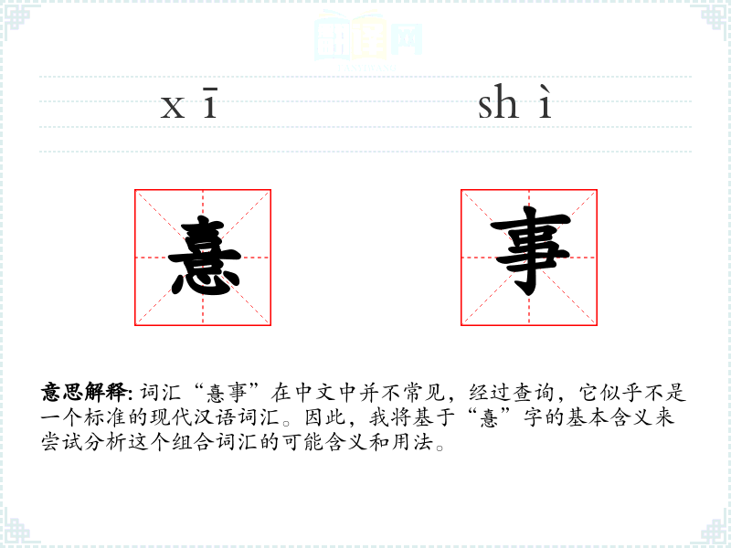词汇“憙事”在中文中并不常见,经过查询,它似乎不是一个标准的现代汉语词汇。因此,我将基于“憙”字的基本含义来尝试分析这个组合词汇的可能含义和用法。