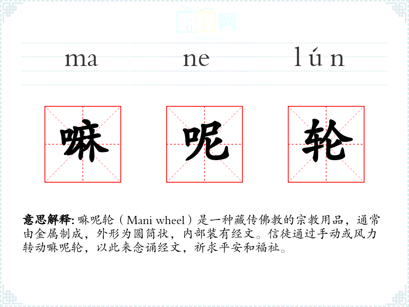 "嘛呢轮"的意思解释、嘛呢轮是什么意思由翻译网汉语词典查词提供。