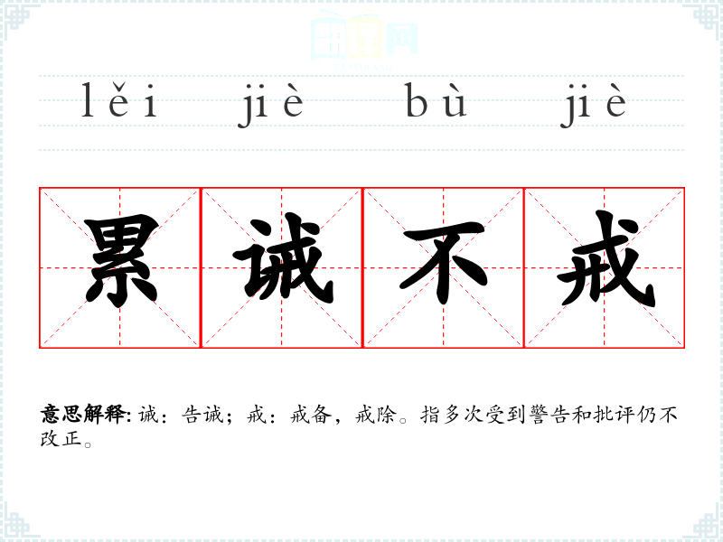 诫:告诫;戒:戒备,戒除。指多次受到警告和批评仍不改正。