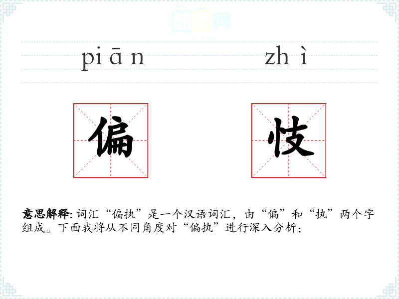 - 字面意思:“偏”表示偏向一方,不公正或不全面;“执”表示坚持、固执。