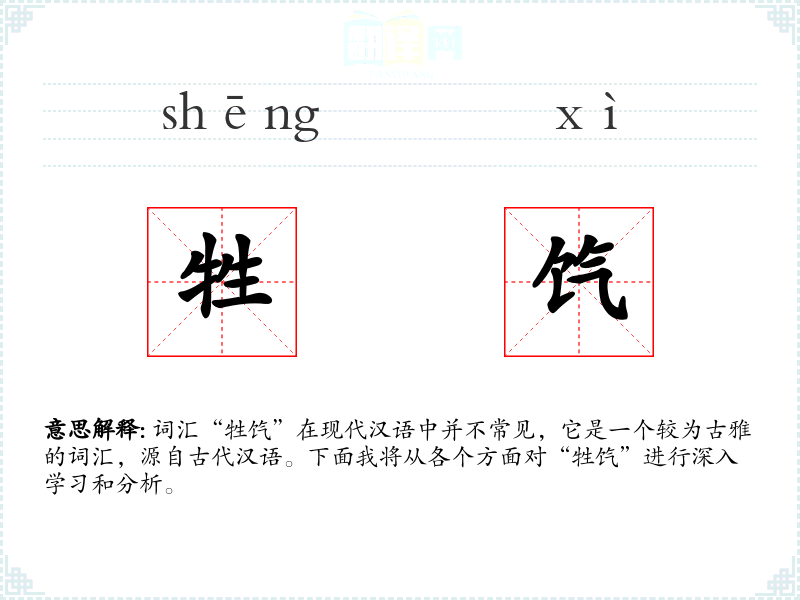 - 反义词:无(由于“牲饩”是一个特定场合的词汇,没有直接的反义词)