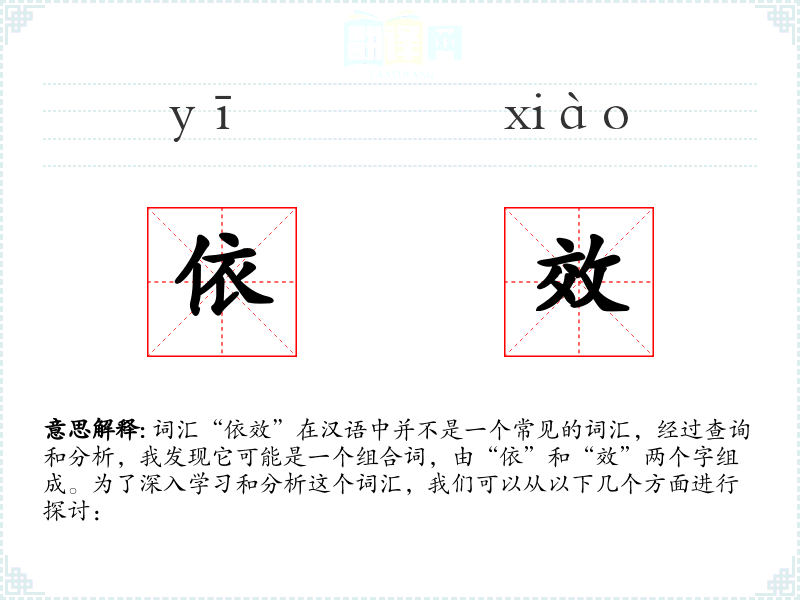 词汇“依效”在汉语中并不是一个常见的词汇,经过查询和分析,我发现它可能是一个组合词,由“依”和“效”两个字组成。为了深入学习和分析这个词汇,我们可以从以下几个方面进行探讨: