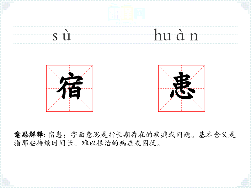 宿患:字面意思是指长期存在的疾病或问题。基本含义是指那些持续时间长、难以根治的病症或困扰。