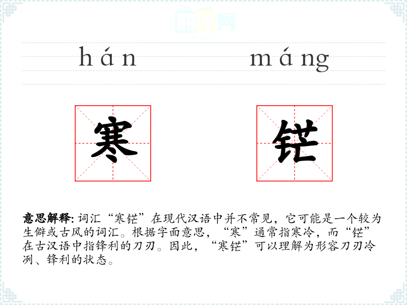 - 词源:“寒”源自寒冷,“铓”源自锋利的刀刃。