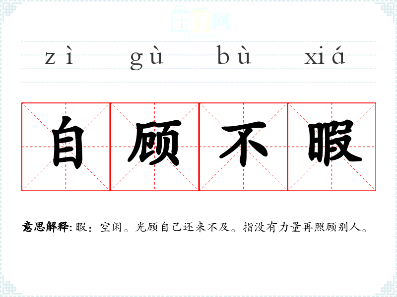 暇:空闲。光顾自己还来不及。指没有力量再照顾别人。